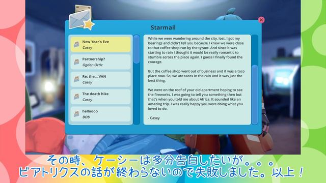 「やっと終点です!」「でも探索はまだ終わらないぜ!」「遺跡ルート、はよはよ。」 「癒しスライムたちと遊ぶ!」スライムランチャー(Slime Rancher)【ゆっくり実況】#18 - 遺跡の終点! 皆さん、どうもどうも!イーストです。スライムランチャー(Slime Rancher)ゆっくり実況その18です!はい、今回は荒野のポッド回収と遺跡屋根部分の探索回です!やっとサイドクエストが終わった!長かったな(裏作業)。。。次は遺跡の屋根部分。パズルがないので探索は快適でした。そして終点には。。。見ればわかるさ!それでは、ゆっくりしていってね =w=b! *動画の訂正と応援、よろしくです!チャンネル登録と動画のLikeもよろしくお願いします!=w=b 「癒しスライムたちと遊ぶ!」スライムランチャー(Slime Rancher)【ゆっくり実況】: プレーヤー/実況者1=【イースト】 実況者2=【まりさ】 実況者3=【れいむ】 「癒しスライムたちと遊ぶ!」スライムランチャー(Slime Rancher)【ゆっくり実況】=【まだ未定です!】 前 = 【https://www.youtube.com/watch?v=71b0t011qxY】 次 = 【未定。】 「癒しスライムたちと遊ぶ!」スライムランチャー(Slime Rancher)【ゆっくり実況】=【https://www.youtube.com/playlist?list=PLQBbazVb191QsfC4iwvYqrXaPdb84B5lF】 【スライムランチャー(Slime Rancher)は?】 開発元:Monomi Park 公式ページはこちら:slimerancher.com Steamページはこちら:http://store.steampowered.com/app/433340/Slime_Rancher/ GOGページはこちら:https://www.gog.com/game/slime_rancher スライムランチャー(Slime Rancher)は世界開拓、スライム飼育と育成、牧場経営シミュレーションゲームです!かわいい、癒しスライムがたくさんゲームです。丸いスライム?あります。猫型スライム?もちろんですとも。爆発するスライム?多分あります。放射性のスライム?あったようなないような。。。一つのことは確実だ:全てのスライムはかわいいです!いわゆるかわいいスライムの天国です! Steamページより: ファー、ファーレンジ(Far, Far Range)へようこそ! スライムランチャー(Slime Rancher)は、魅力的で一人称視点のサンドボックス体験である。あなたはビアトリクス・ルボー(Beatrix LeBeau):遠く離れた地球から数千年離れた人生を「ファー、ファーレンジ」(Far, Far Range)に仕立て上げた若い牧場経営者。 スライム牧場のビジネスで大金を儲けようとするときに、毎日新しい課題と危険な機会があなたを待っています。あなたの万能のバクパック(Vacpack)で色鮮やかなスライムを集め、作物を栽培し、資源を収穫し、未踏の野生を探索しよう。 求めを握り詰めよう! 有名な牧場家ホブソン・ツイジャー(Hobson Twillgers)は、あなたに牧場を渡しました。牧場を修復し、この神秘的な惑星に隠された秘密を発見し、プロート(Plort)市場を支配しましょう。 ‐農作物を栽培し、鶏(Chickadoos)を飼育して、飢えたスライムたちに餌を与えよう。 ‐他の牧場からの毎日のリクエストを完成して、ボーナス報酬を手に入れましょう。 ‐お金を稼ぎ、バクパック(Vacpack)をアップグレードしたり、おりを築いたり、牧場を拡張したりすることができます。 ‐スライムサイエンスを使用して、珍しい資源や飾りを見つけたり、冒険に役立つガジェットを作成したりできます。 ‐多くの秘密と隠された財宝で満たされた広大な世界を探索しましょう。 【BGM/SE】 オープニングとエンドカード:魔王魂 http://maoudamashii.jokersounds.com/ 【ゆっくり実況の作成ソフト / 素材】 *ゆっくりMovieMaker by饅頭遣い様 http://manjubox.net/ *ゆっくり素材byきつね様 http://www.nicotalk.com/ktykroom.html *キャラ素材スクリプトbyズーズ様 http://www.nicotalk.com/ *AviUtl本体と拡張編集プラグインbyKENくん様 http://spring-fragrance.mints.ne.jp/aviutl/ *x264guiExプラグインby rigaya様http://rigaya34589.blog135.fc2.com/ *L-SMASH Works http://pop.4-bit.jp/
