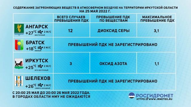 [26.05.2022] Мониторинг состояния атмосферного воздуха за 25.05.2022
