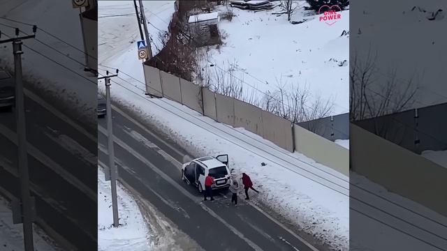 Потушили снегом.