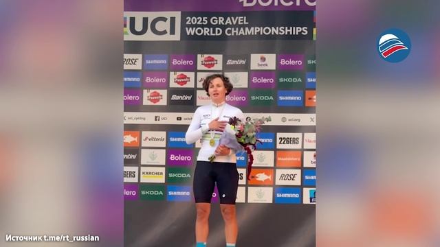 Российская велосипедистка, выступающая под нейтральным флагом, спела гимн после победы в Нидерландах