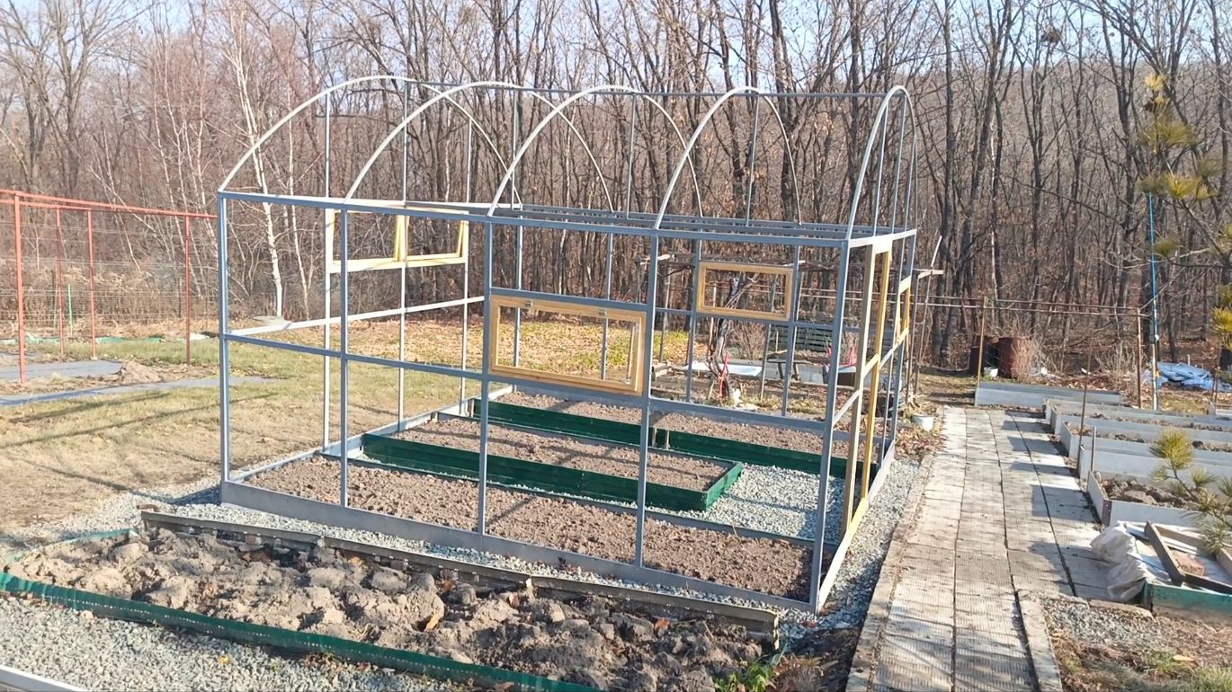 Теплица размером 4×4 метра, возведённая собственными силами, представляет собой компактное сооружение, идеально подходящее для выращивания овощей, зелени, ягод и цветов даже в условиях ограниченного пространства участка. Она позволяет создать оптимальные условия микроклимата, обеспечивая растения теплом, светом и влагой вне зависимости от погодных условий. В данном видео показан процесс строительства теплицы поэтапно. Может кому-то пригодится мой опыт и идея для установки теплицы у себя на участке. Часть 1 - возведение каркаса и грядок. Часть 2 будет в феврале-марте, процесс укрывания теплицы пленкой, крепление пленки. Также это видео можно посмотреть на других каналах: https://youtu.be/HUEXCsPomnQ dzen.ru/video/watch/692beca817643e18f31a389f