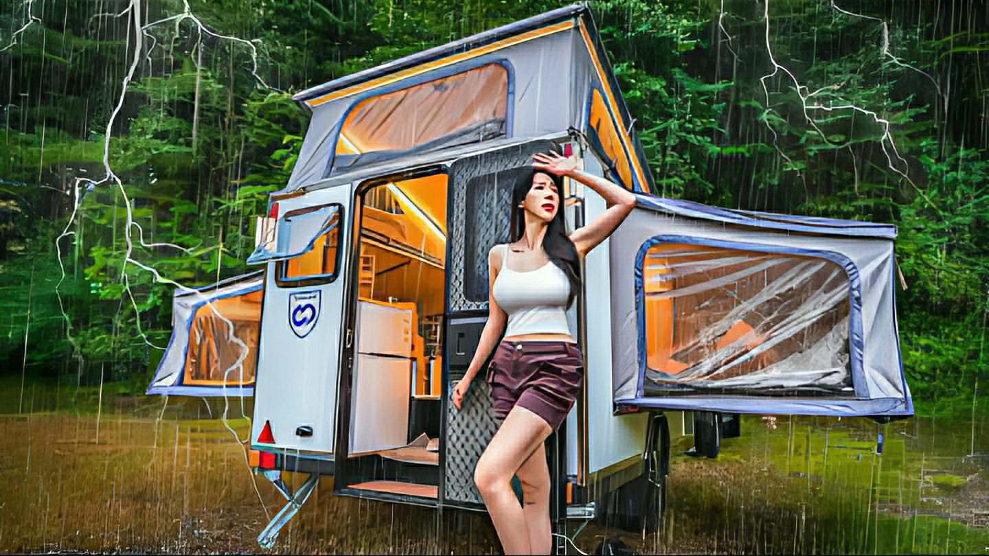 Кемпинг в роскошном автодоме под дождем. Бушкрафт