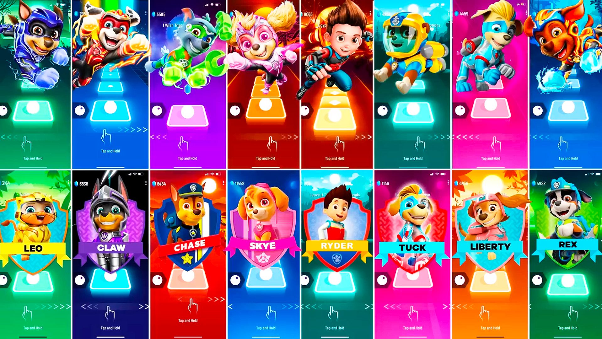 Мультики для Детей Щенячий Патруль Tiles Hop - ГОНЩИК, МАРШАЛЛ, РОККИ, СКАЙ, РАЙДЕР, КРЕПЫШ