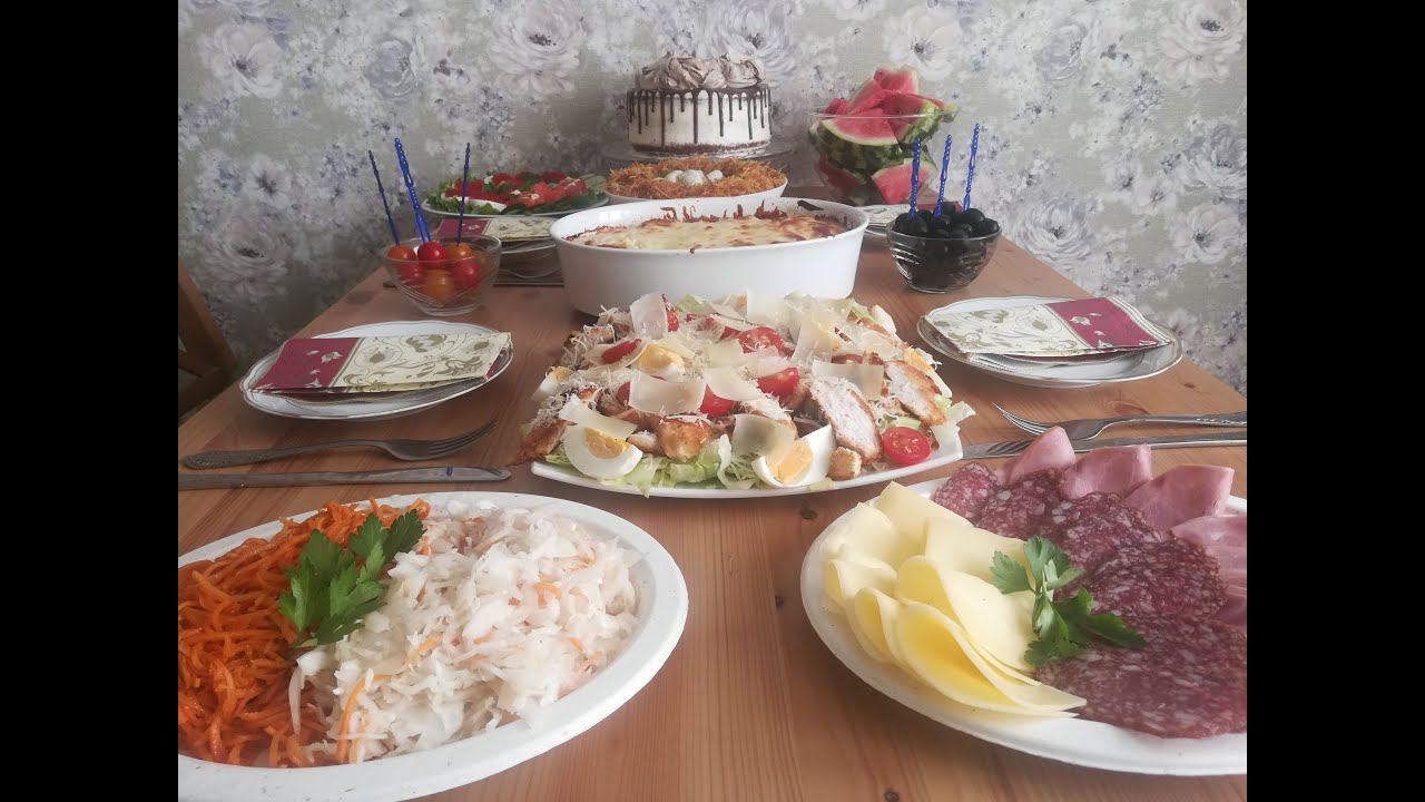 ПРАЗДНИЧНОЕ МЕНЮ НА ДЕНЬ РОЖДЕНИЯ. ПРАЗДНИЧНЫЙ СТОЛ: ТОРТ, МЯСНОЕ, САЛАТЫ, ЗАКУСКИ