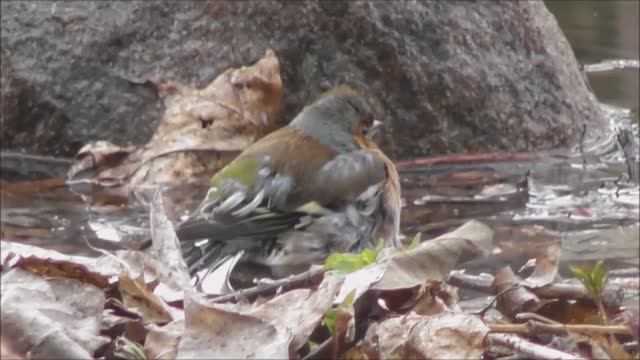 Зяблик принимает ванны, наблюдение птиц в Великом Новгороде, 16.04.2023