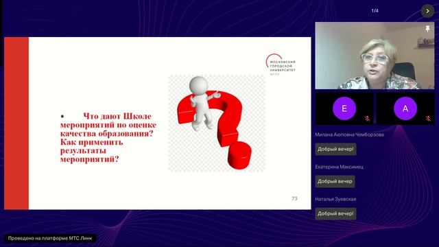 Дата проведения вебинара —10 декабря 2024 года Ведущий вебинара, Ладнушкина Нина Михайловна, рассмотрела новые инструменты оценки качества общего образования, возможности их применения, а также ответила на вопросы участников вебинара.