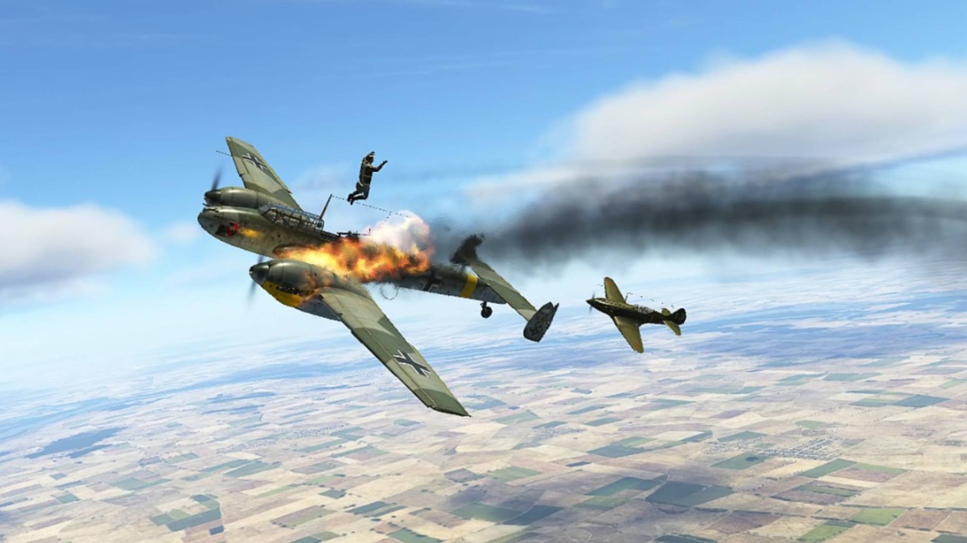 Два МиГ-3 против двух Bf110. Прицельно в двигатель. VR