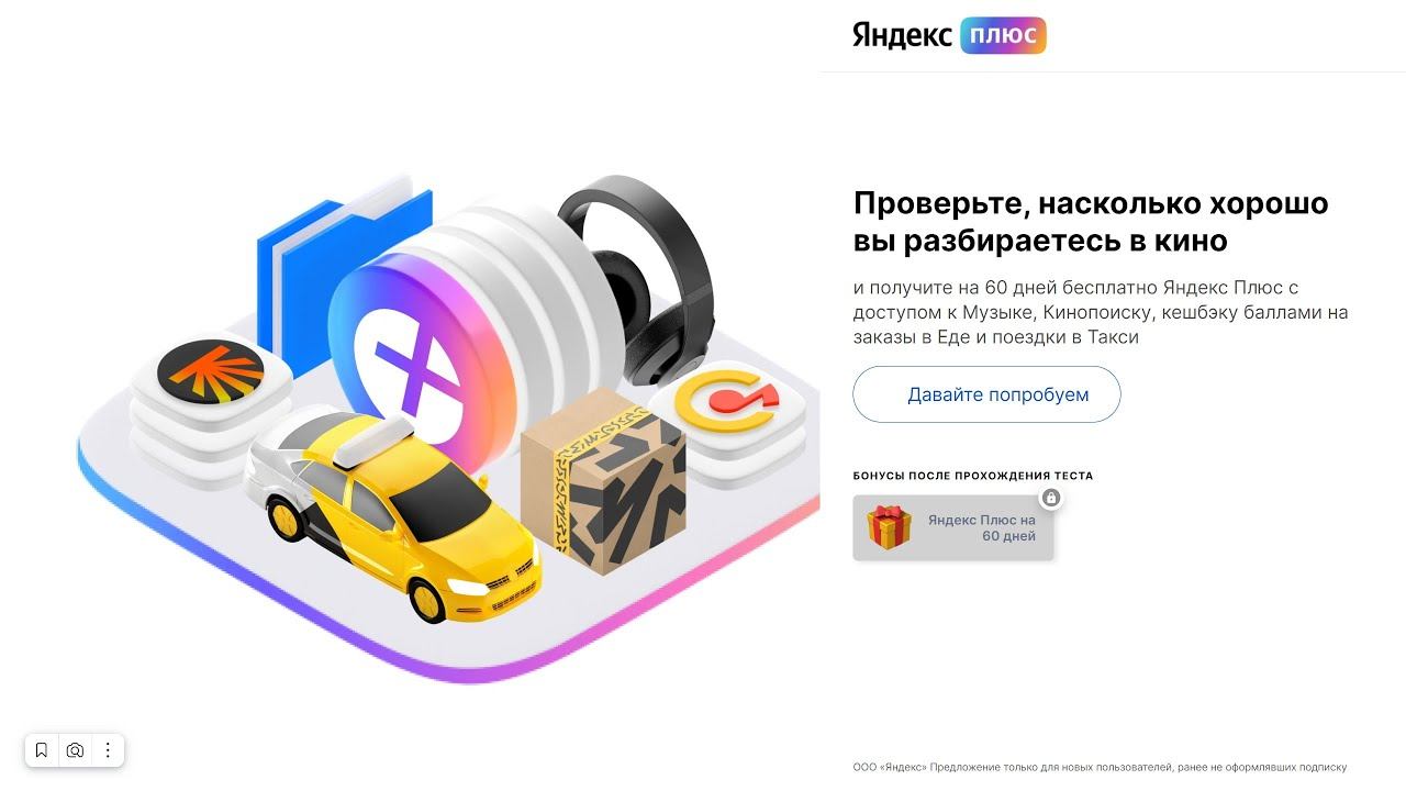 Проверьте, насколько хорошо вы разбираетесь в кино и получите на 60 дней бесплатно Яндекс Плюс