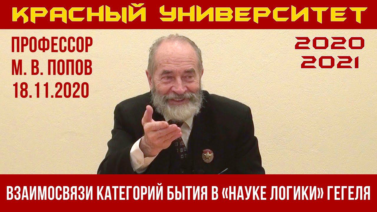 Взаимосвязи категорий бытия в «Науке логики» Г. Гегеля. М.В.Попов. 18.11.2020.