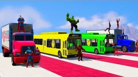 Моды для GTA V - Автобус и грузовик для детей с 3D анимацией супергероев