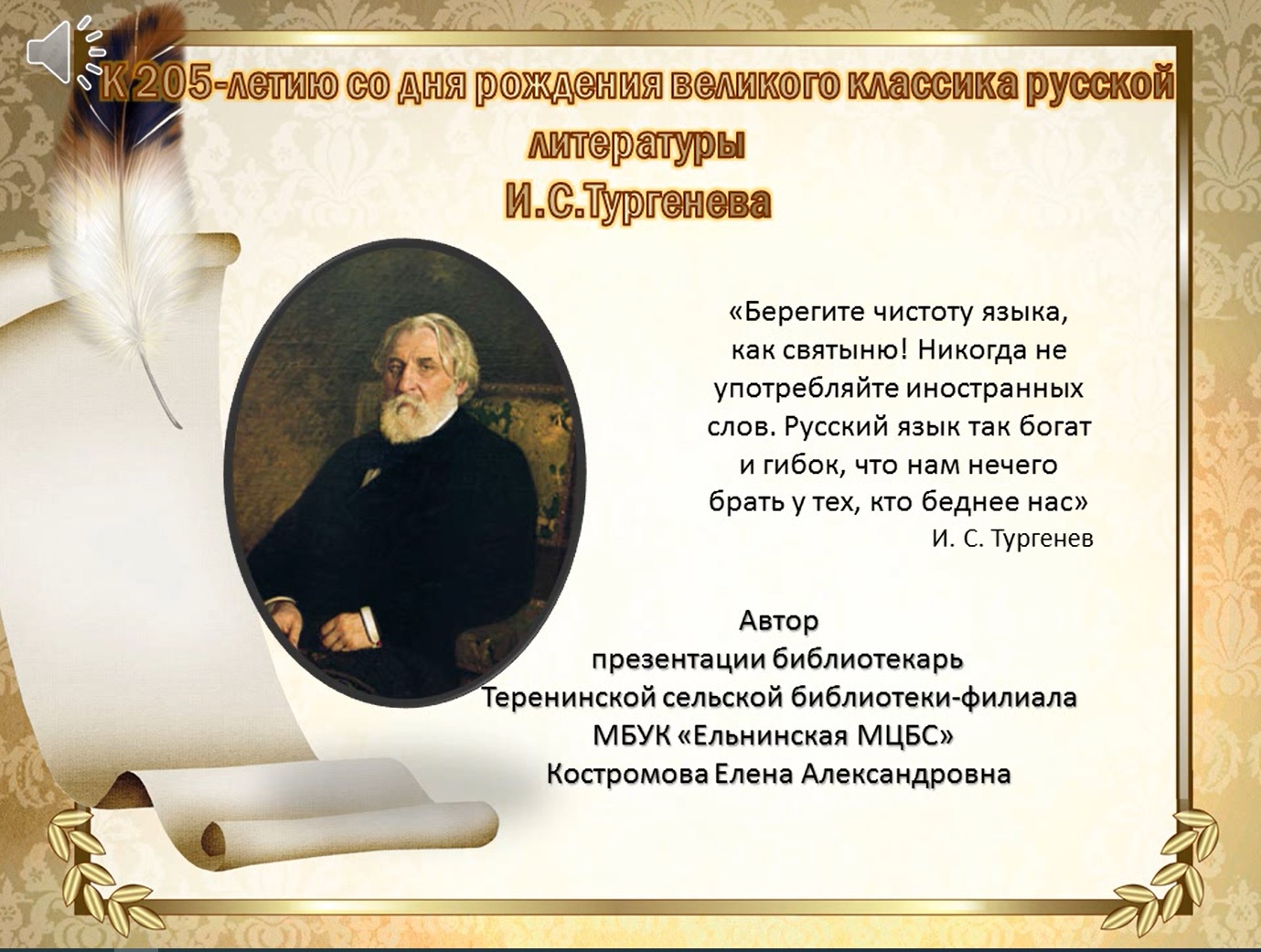 Видеопрезентация «И.С. Тургенев» к 205-летию со дня рождения великого русского писателя Ивана Сергее