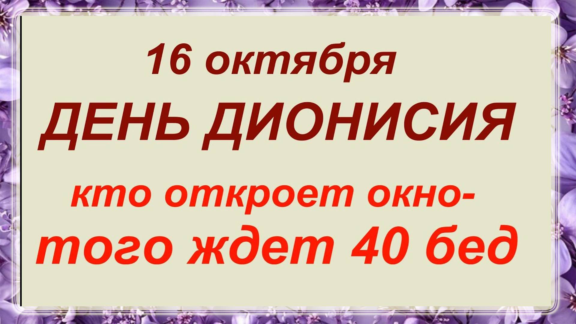 16 октября день Дионисия. Что делать нельзя. ПРИМЕТЫ, ОБЫЧАИ ТРАДИЦИИ