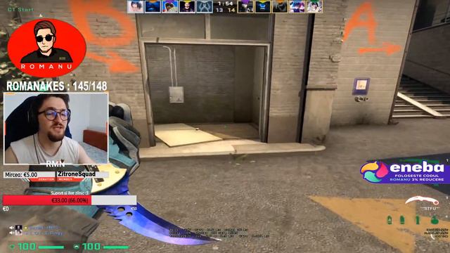 ❗️ENEBA.com - locul perfect pentru a-ti achizitiona jocuri (PS4, Xbox, PC)! ❗️Foloseste codul Romanu pentru 3% DISCOUNT!: http://bit.ly/3n6COik ❗️Foloseste codul Romanu pentru 3% DISCOUNT la toate jocurile FPS / TPS!: http://bit.ly/2WTut6T ❗️1€ ENEBA BONUS la inregistrare : https://bit.ly/38QcdAC ✪Support the stream: https://streamlabs.com/romanuprj ✪ DEVINO MEMBRU : https://bit.ly/2FLQA6G SAMBATA CU MEMBRII ✪ skins donate : https://bit.ly/2L8n4wE ✪STEAM GROUP : https://bit.ly/2YdLF94 🔴Business inquiries : Stanisoara_radu@yahoo.com 🔴 GIVEAWAY SHADOW DAGGERS NIGHT FT PENTRU MEMBRI PE 5 MARTIE 🔴PROMOVARI CANALE/INSTAGRAM/SERVERE CS : 12E SUPERCHAT ✪Follow on INSTAGRAM: https://www.instagram.com/romanuvere/ ✪DISCORD : https://discord.gg/DPsMkVkuaJ intrati pentru a va lua grade de member si add pe steam Quick reminder : I will never ask for donations, but they are much appreciated and also non-refundable. 🔥SPECS 🔥 CPU Intel Core i7 7700K@ 4.20GHz KABY LAKKE RAM : Corsair Vengeance LPX DDR4, 2x8GB, 2400 MHz Motherboard : ASUSTeK COMPUTER INC. PRIME Z270-A PLACA VIDEO : NVIDIA GeForce RTX 2070 MONITOR ALIENWARE 240HZ 💧GEAR 💧 Mouse : LOGITECH G PRO WIRELESS Casti : LOGITECH G PRO X Tastatura : LOGITECH G710 Mousepad :ZOWIE GSR-SE large Daca cumperi ESEA si vrei sa ma ajuti cu un refferal : https://play.esea.net/subscribe/?r=78 #livestream #romanian #FACEIT