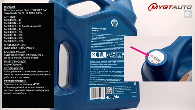 Продукт: Моторное масло SHELL HELIX HX7 SAE 10W-40 API SN PLUS ACEA A3/B4 4L Наш телефон: 8-800-550-57-22 ПН-ПТ 9.00-17.00 (МСК+4) Артикул: 550046360 - 4L 550040312 - 1L 550046365 - 1L (новая канистра) 550040315 - 4L 550040008 - 20L 550040119 - 55L 550046522 - 55L 550040009 - 209L Производитель: ООО Шелл Нефть, Россия Базовое масло: Гидрокрекинговое, минеральное с синтетическими компонентами Пакет присадок: Active Cleansing Ссылка для покупки: https://mygt.ru/oil/shell/shell-helix-hx7-10w-40-4-l.html Описание: Моторное масло на основе синтетики - помогает двигателю оставаться чистым и работать эффективно. Используются как синтетические, так и минеральные базовые компоненты для достижения более высоких уровней рабочих характеристик, чем можно получить на основе только минеральных масел Помогает продлить ресурс двигателя, защищая его от износа даже в тяжелых повседневных условиях уличного движения Для бензиновых, дизельных и газовых двигателей, но подходит и для биодизельных смесей, а также смесей бензина и этанола. Спецификации: API SN; ACEA A3/B3, A3/B4; MB-Approval 229.3; VW 501.01/505.00; Renault RN 0700, 0710 Характеристики - Кинематическая вязкость при температуре 40°C: 96.31 сСт - Кинематическая вязкость при температуре 100°C: 14.37 сСт - Индекс вязкости: 154 - Динамическая вязкость при -30°C: (MRV) 21100 сП - Плотность при 15°C: 860 кг/м3 - Температура вспышки: 246°C - Температура застывания:-45°C - Рекомендуемый интервал замены: согласно рекомендации производителя вашего автомобиля Отличие оригинальной упаковки: - На крышке должна быть наклеена голограмма с 16-значным кодом. Стикер - двухслойный, а капля на голограмме должна переливаться. - Проверку кода можно провести на сайте http://www.ac.shell.com/ Подробная инструкция в описании к этому видео. - Для оптовиков: на каждой канистре в коробке нанесена дата производства с точностью до секунды. Временной промежуток между маркировкой двух последовательно выпущенных продуктов составляет от одной до трех секунд. Инструкция по проверке: ВВЕДИТЕ 16-ЗНАЧНЫЙ КОД НА САЙТЕ WWW.AC.SHELL.COM Продукт является подлинным только в том случае, если стикер соответствует обоим атрибутам, и после проверки QR-кода или 16-значного кода на сайте ac.shell.com вы получаете конкретный ответ. В случае, если после сканирования QR-кода или 16-значного кода, система отправляет вас на сайт shell.com – продукция не является подлинной. ЧТО ДЕЛАТЬ, ЕСЛИ ВЫ ПРИОБРЕЛИ НЕ ПОДЛИННЫЙ ПРОДУКТ? Если после сканирования QR кода или проведения идентификации на сайте ас.shell.com, вы пришли к выводу, что купленный вами продукт не является оригинальным, согласно ст. 18 Закона «О защите прав потребителей» вы имеете право отказаться от исполнения договора купли-продажи и потребовать возврата уплаченной за товар суммы. При этом, для того чтобы получить сумму, уплаченную за товар ненадлежащего качества, пожалуйста, убедитесь, что целостность упаковки товара не нарушена и вы имеете документ, подтверждающий факт заключения договор купли-продажи (кассовый/товарный чек) Ссылки на дополнительные материалы по продукту, а также SDS и TDS: http://nskrobot.ru/images/FOTO/MYGT_RU/550046360_SDS_MYGT_RU.pdf http://nskrobot.ru/images/FOTO/MYGT_RU/550046360_TDS_MYGT_RU.pdf #характеристикимасла550046360 #моторноемасло #antonmygt #mygtru #mygtauto #oemcatalog Наш сайт: MYGT.RU Наш канал ПРАВДА ПРО АВТОМАСЛА: https://www.youtube.com/channel/UC5JygfcXAA5Xq18sxUx_wIQ/ Телефон: 8 800 550 57 22 Бесплатно по России Внимание! Полное либо частичное копирование данного материала без согласия автора допускается только при указании ссылки на источник (данный канал) Все права защищены AN