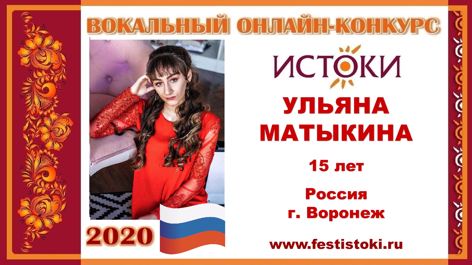 Участница Вокального онлайн-конкурса "Истоки"-2020. Песня "Самое главное". Авторы: музыка В. Темнов, слова А. Лойко и В. Бутенко. Сайт: www.festistoki.ru / www.festistoki.com E-mail: festistoki@mail.ru