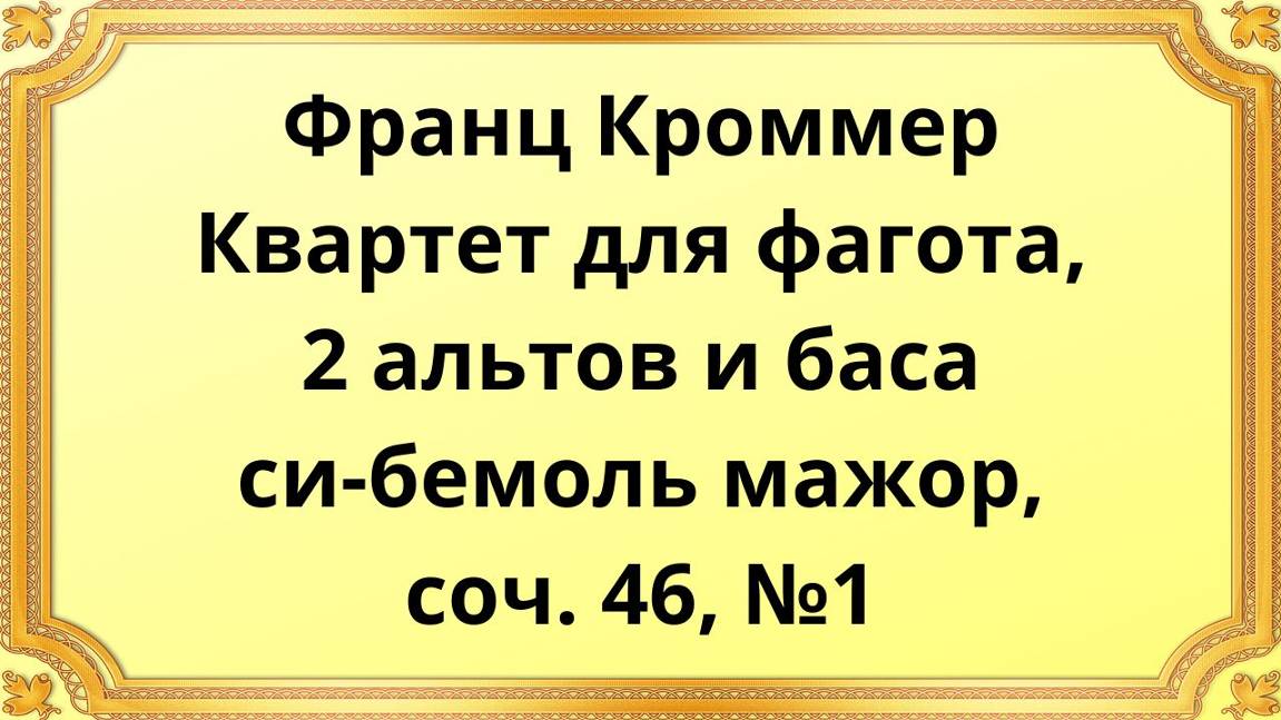 Франц Кроммер Квартет для фагота, 2 альтов и баса си-бемоль мажор, соч. 46, №1