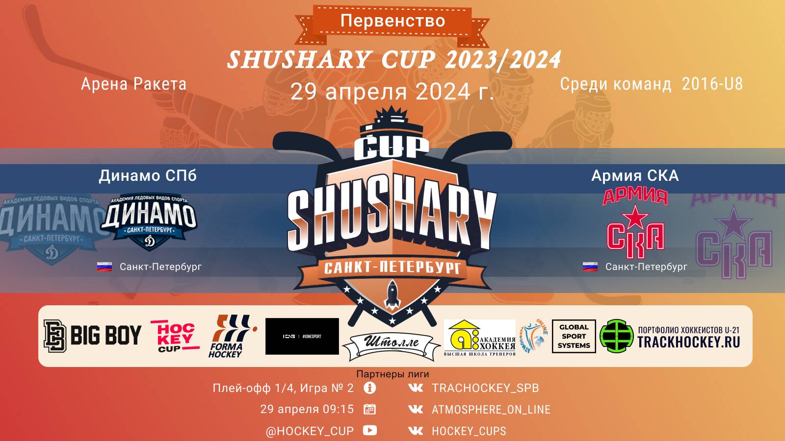 ПЕРВЕНСТВО SHUSHARY CUP среди команд 2016 г.р. (U8), Арена "РАКЕТА" 29 АПРЕЛЯ 2024 САНКТ-ПЕТЕРБУРГ, игра № 2 ХК "Динамо"-ХК "Армия СКА"/ПЕРВЕНСТВО SHUSHARY CUP, 29-04-2024 9:15