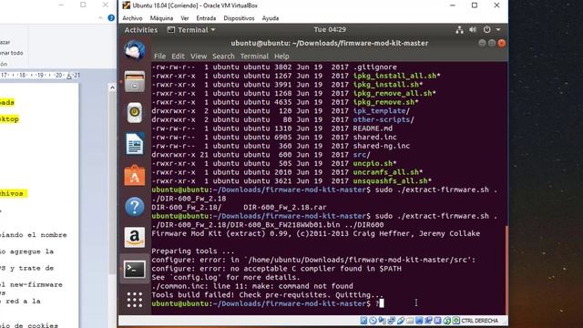 REQUERIMIENTOS -Descargar e instalar VirtualBox https://www.virtualbox.org/wiki/Downloads -Crear Máquina virtual 2GB 2 núcleos 10GB -descargar ISO Ubuntu 18.04 Desktop https://www.ubuntu.com/download/desktop -Arrancar Ubuntu 18.04 en modo try con ISO -Escoger el idioma del teclado PASOS PARA MODIFICAR EL FIRMWARE DEL ROUTER -Con Firefox descargar y extraer: PS4-HTML, https://github.com/jpmk8/PS4-HTML firmware-mod-kit, https://github.com/rampageX/firmware-mod-kit firmware del Router a modificar -extraer el firmware del router, e ir instalando los archivos dependientes -En la carpeta rootfs buscar el punto de inserción de los archivos HTML -mover la carpeta PS4v505 o PS4v455 a la capeta renombre a ps4 -Verificar que el router permita la modificación del archivo etc/hosts si existe agregue el contenido del archivo hosts.txt, sino muévalo cambiando el nombre a hosts cuando todo este correcto reconstruya el firmware, si se pasa del tamaño agregue la opción -min o borre archivos que no afecten el funcionamiento del router como el WPS y trate de nuevo -coloque una memoria USB y cárguela en la máquina virtual para salvar el new-firmware luego desconecte la memoria de la máquina virtual para usarla en Windows -por medio de la red ethernet, cable RJ45, cambié la IP y la mascara de red a la opción de recuperación por defecto -En el router entre en modo de recuperación y con el navegador web limpio de cookies entre a la IP del router, por lo general es 192.168.0.1, cargue el nuevo firmware espere que reinicie, y pruebe si todo esta correcto OK :)