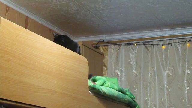 Кошка Люська. Выпросить колбаски или лечь спать