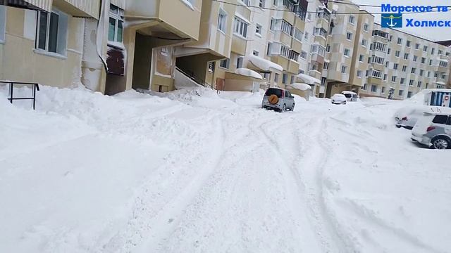 город Холмск в снежном плену в январе 2022 года