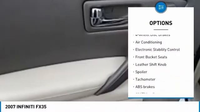 2007 INFINITI FX35 http://www.CarsonCars.net For more information on this vehicle and our full inventory, call us at 425-697-6969 Carson Cars 13806 Highway 99 Lynwood WA 98087 Pick up this Diamond Graphite Metallic 2007 INFINITI FX35, available today at Carson Cars. This could be the one you've been searching for. Contact the dealer at 425-697-6969 and take it home today!