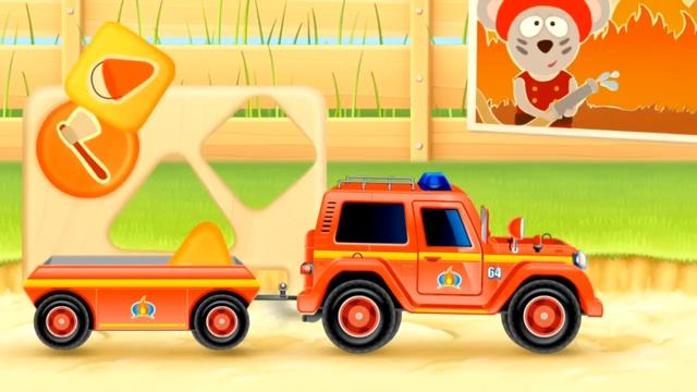 Мультфильм "Пожарная машина с прицепом". Машинки и динозавр