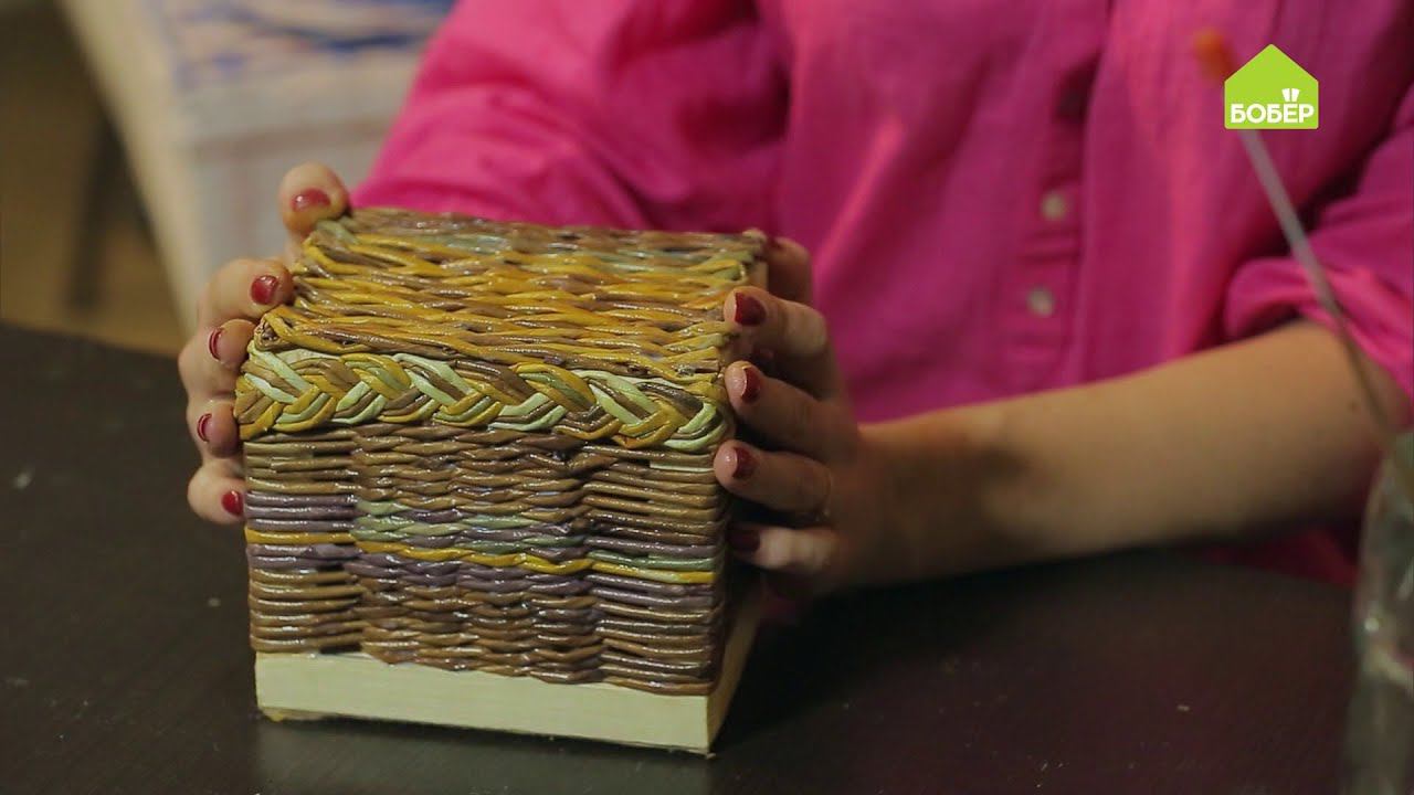 Плетёный сундучок из бумажных трубочек