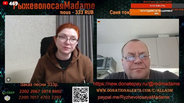 Стримы проводим на новом канале по ссылке https://www.youtube.com/channel/UCpd7cP8a8TbXkhRfZB9-V1g также стримы можно смотреть на следующих платформах https://vkplay.live/rmadame https://vk.com/video/ @RMadame https://boosty.to/ryzhevolosaya-madame Пообщаться в голосовом чате, обсудить новости и узнать первым о предстоящем стриме можно подписавшись на телеграмм канал https://t.me/redheadMadamchat Все беседы ведутся с развлекательной целью и не направлены на разжигание какой либо вражды. Поддержать меня карта Сбер 2202 2067 3874 8602, Тинькофф 2200 7009 0724 4924 или голосовым донатом по ссылке https://www.donationalerts.com/r/alladm