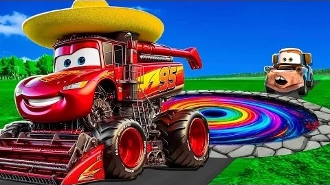 🌈 Трансформация радужной ямы: Большая и маленькая Молния Маккуин и Мама против машин Pixar! Луч.При
