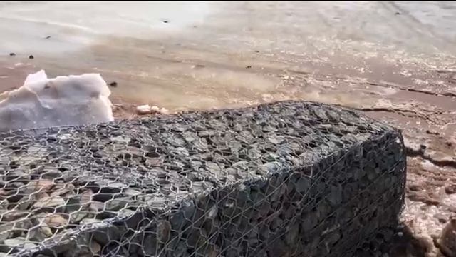Большая льдина на реке Урал повредила конструкции набережной, которые были построены в прошлом году.