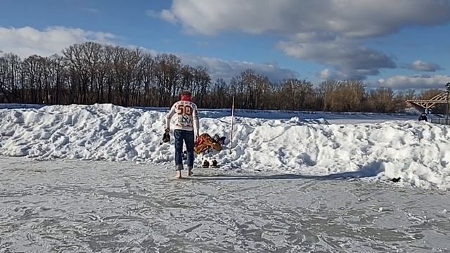 Веселый режиссер играет в хоккей босиком во время съемок кинокомедии