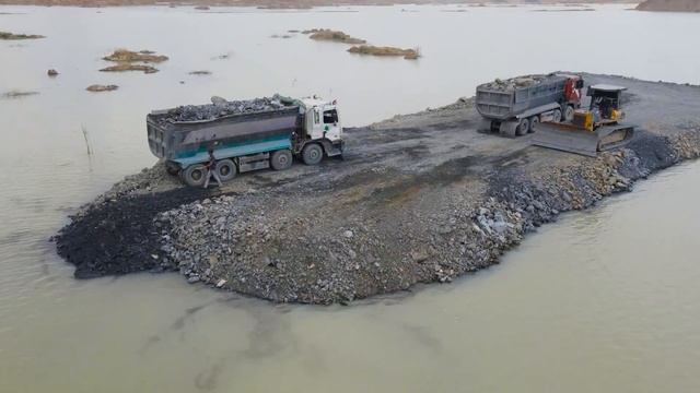 Строительство, дорога через озеро , засыпка