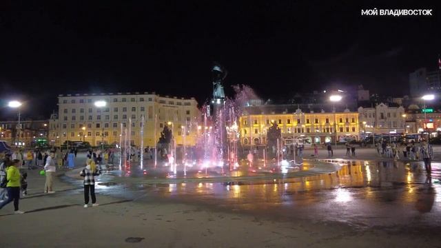 Вечерний Владивосток,фонтан на площади (16 сентября 2023).