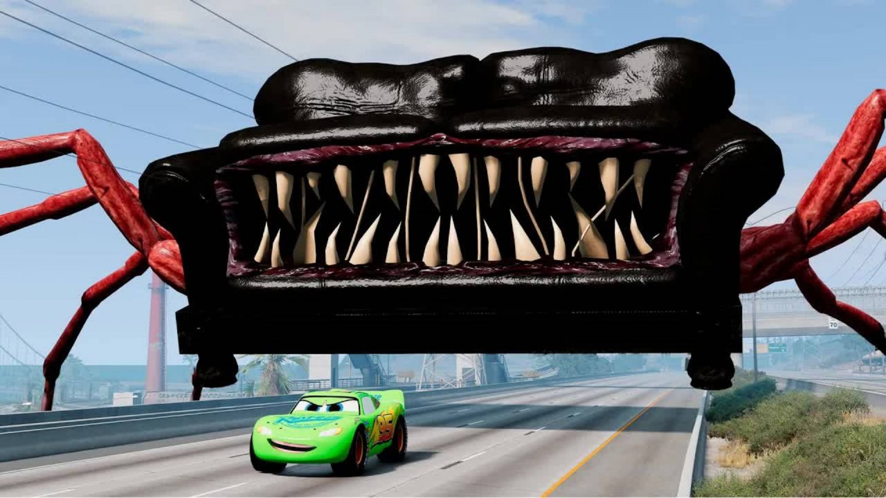 Эпический побег от Пожирателя Молний Маккуина, Пожирателя диванов, пожирателя роботов BeamNG