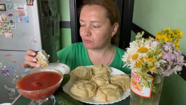 Мукбанг, манты домашние