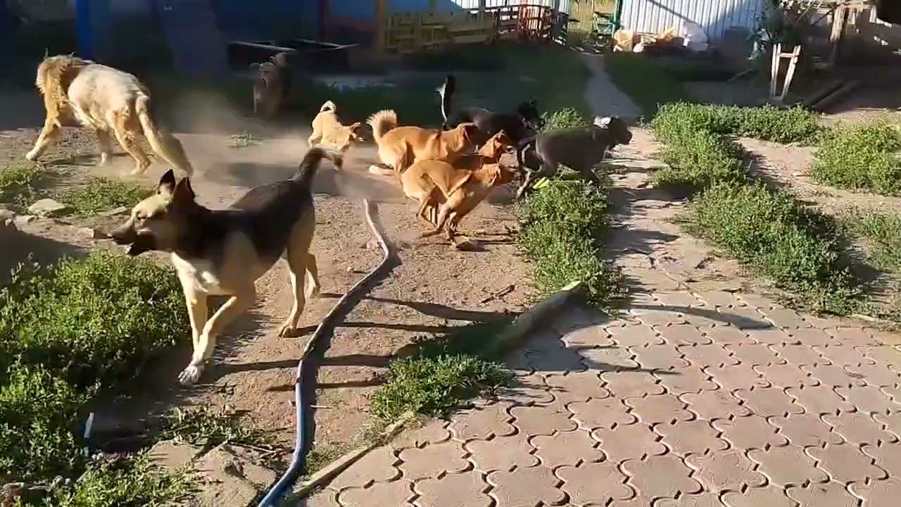 Пока ещё солнце не в зените, собачки решили побегать
