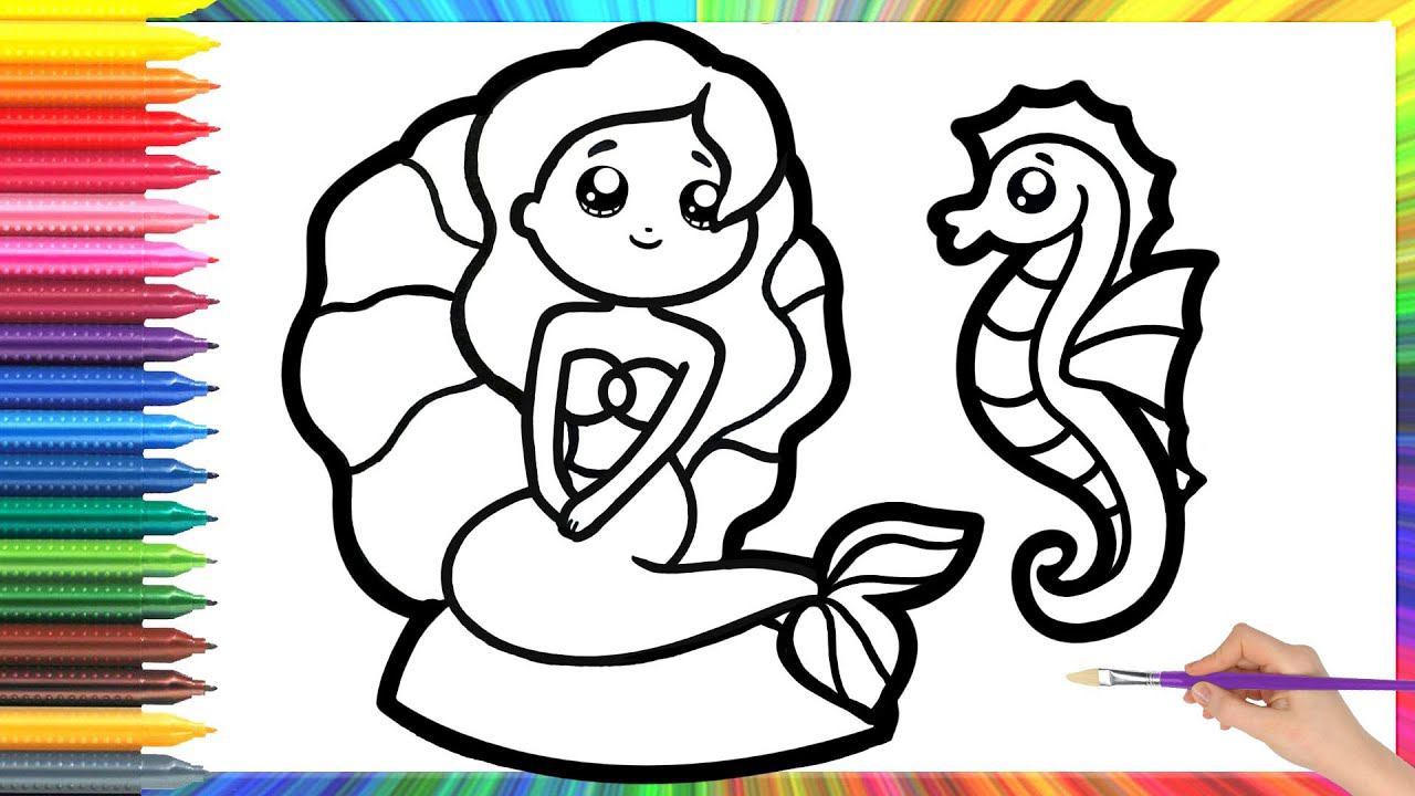 How to draw a mermaid and a seahorse for kids/Bolalar uchun suv parisi va seahorse qanday chiziladi