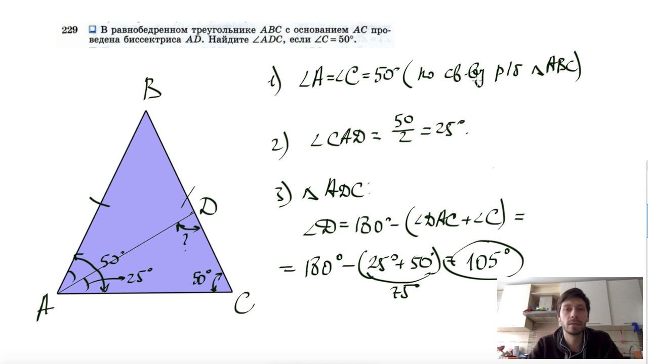 №229. В равнобедренном треугольнике ABC с основанием АС проведена биссектриса AD. Найдите ∠ADC, если ∠C= 50°. Поддержать канал рублём - 5469400944002125 (Сбербанк) Мой второй канал для подготовки к ЕГЭ и ОГЭ - https://www.youtube.com/ЕвгенийСумин Инстаграм - https://www.instagram.com/EGE_OGE.math Личный инстаграм - https://www.instagram.com/ee_sumin VK - https://vk.com/evgeniysumin FB - https://www.facebook.com/EvgeniySumin