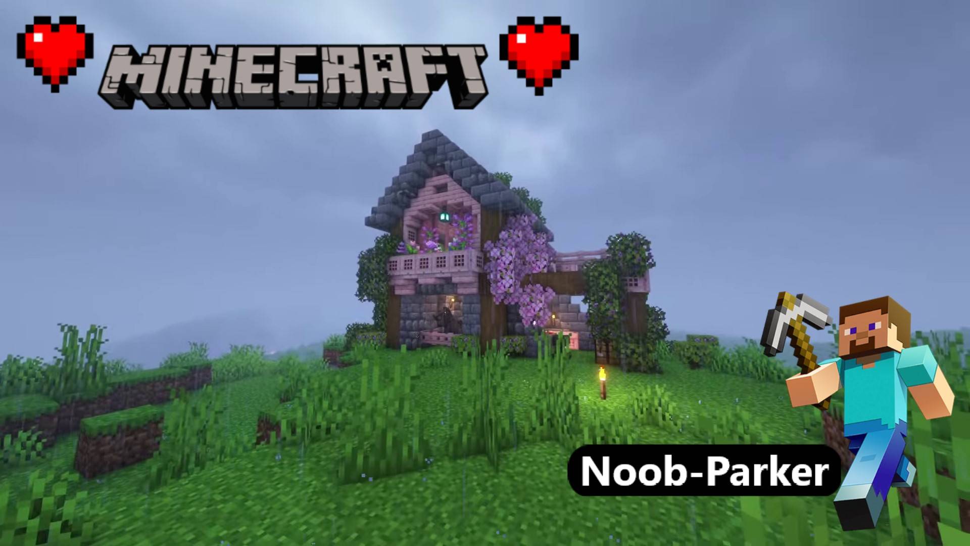 Майнкрафт вишнёвый коттедж на холме