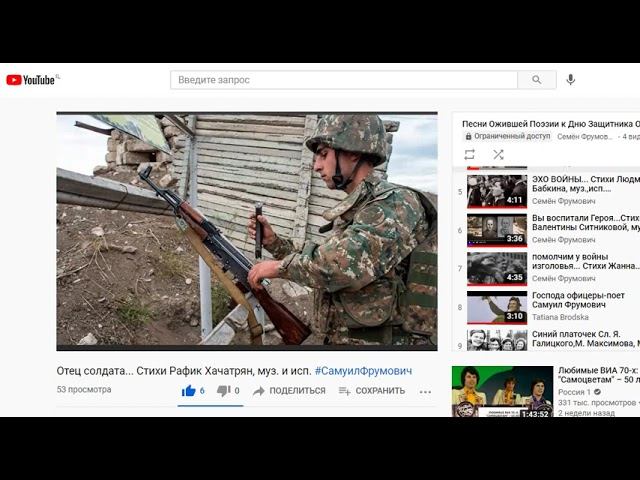 Забытые концерты ОП-25, Концерт 069, к 23 февраля, муз. исп. Самуил Фрумович http://youtu.be/nUJeharB5ZAЗабытые концерты ОП-25, Концерт 069, к 23 февраля, муз. исп. Самуил Фрумович https://rutube.ru/video/private/8c8f8da32e647345a6eed9c5e559d279/?p=9XeKAG0NiOZnBuRM8aT80Q 00:00 В этом Обзоре Вы услышите...: Забытые концерты ОП-25, Концерт 069, к 23 февраля, муз. исп. Самуил Фрумович 00:30 1. Песнь о солдате... Сл. М. Агашина, муз. В.Мигуля,исп. С.Фрумович,видео В.Куксенко https://rutube.ru/video/e3e82ec996411d88a1ff547fde8bc846/ Источник: https://stihi.ru/2024/04/04/749 03:42 2. Эх, дороги... Слова Л.Ошанин, муз. А. Новиков, исп. #СамуилФрумович Источник: https://stihi.ru/2024/09/03/3013 06:50 3. Эх, Дороги наши...Слова, муз. и исп. Самуила Фрумовича Источник: https://yandex.ru/video/preview/5966045080025754817 09:43 4. Отец солдата... Стихи Рафик Хачатрян, муз. и исп. #СамуилФрумович Источник: https://stihi.ru/2020/11/14/9168 14:20 5. ЭХО ВОЙНЫ... Стихи Людмила Бабкина, муз.,исп. #СамуилФрумович Источник: https://stihi.ru/2020/06/21/5497 17:36 6. Вы воспитали Героя...Стихи Валентины Ситниковой, муз. и исп. С.Фрумовича https://yandex.ru/video/preview/7264027976474736338 Источник: https://stihi.ru/2020/03/19/8264 21:03 7. помолчим у войны изголовья... Стихи Жанна Безкорсая, муз. и исп. #СамуилФрумович Источник: https://stihi.ru/2013/06/21/7420 24:30 8. Господа офицеры-поет Самуил Фрумович, стихи Татьяны Бродской Источник: https://rutube.ru/video/f1ac28ba5f5b77f1ca957627a13474a5/ 26:50 9. Синий платочек Сл. Я. Галицкого,М. Максимова, Муз. Е. Петерсбурского исп. С.Фрумович https://rutube.ru/video/43a43fa13ba248d36dbeadc418f5e8d7/ Источник: https://stihi.ru/2020/06/21/6471 29:10. НЕДОПЕТАЯ ПЕСНЯ ВОЙНЫ.Стихи Людмила Бабкина, музыка, исп. Самуил Фрумович https://yandex.ru/video/preview/8753418302863964968 Источник: https://stihi.ru/2020/05/06/4351 semfrum24@gmail.com Samuil Frumovich sem142301@gmail.com Желающие поблагодарить и получить в подарок Композиции на любые стихи: 2202 2067 8303 4833 руб. 5310 8403 0044 7672 другие: шек. евро. дол. Видео Записано 22.02.25 http://www.youtube.com/channel/UCAcmcnps1hbIeb3XjG-ABdg Мой ютуб канал https://rutube.ru/channel/23940914/ мой рутуб под sem142301@gmail.com https://rutube.ru/channel/31944351/ мой рутуб под frum-15@ya.ru 9296833950 http://stihi.ru/avtor/sem151