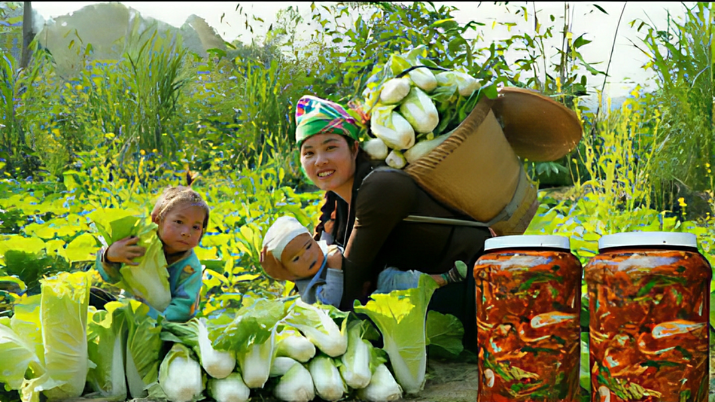 Собираю урожай капусты, что бы приготовить кимчи вместе с детьми и отнести ее на рынок для продажи