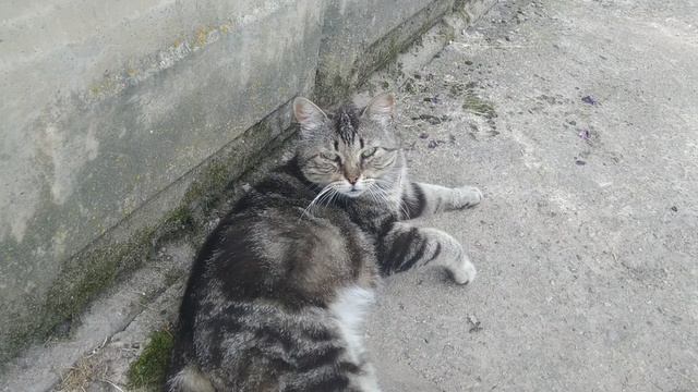 Кошка в жару на отдыхе