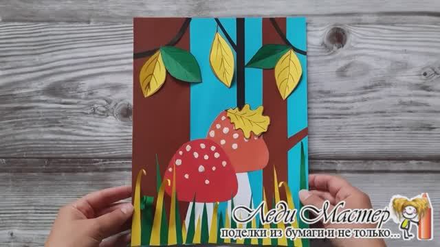 Осенняя поделка - аппликация грибы в лесу