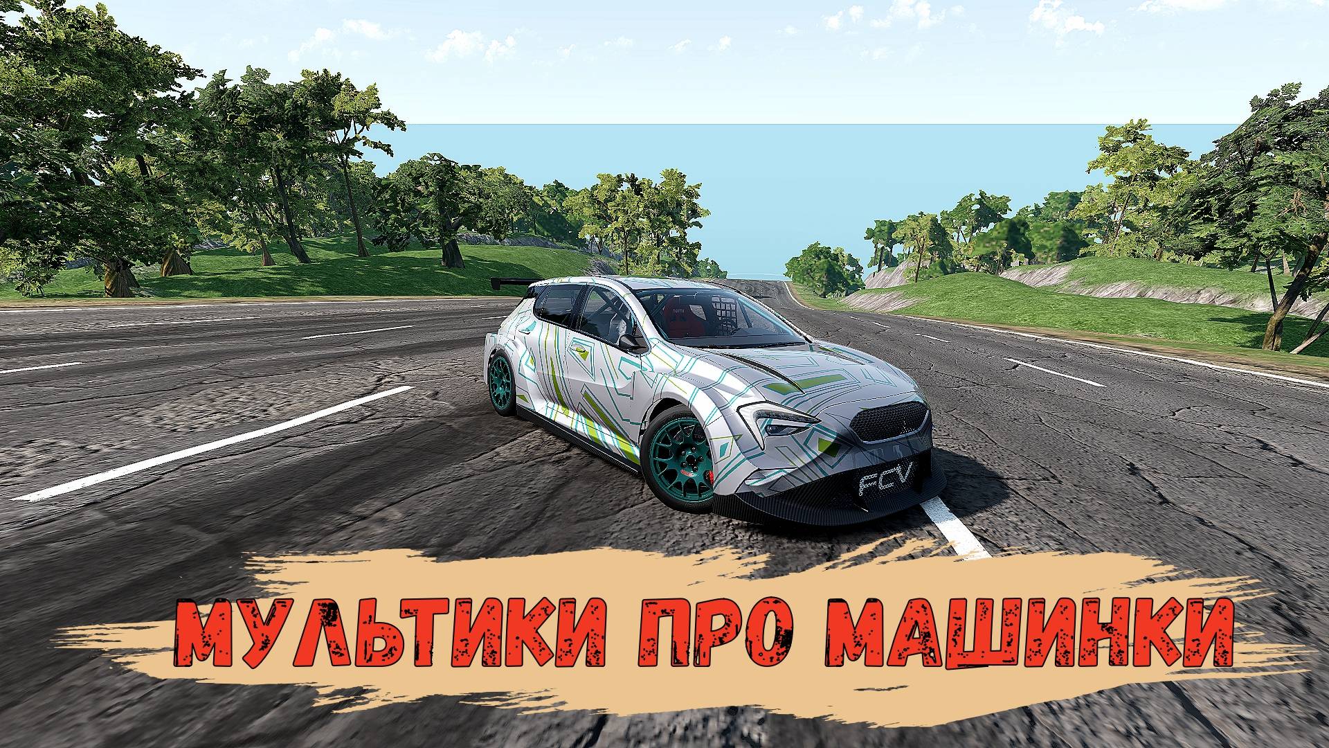 Мультики про машинки. Гоночная машинка прыгает и летает кувырком.