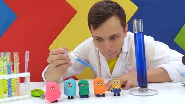 Игры с доктор Ой - Разноцветные Миньоны. Видео для мальчиков и девочек про игрушки из мультфильмов.