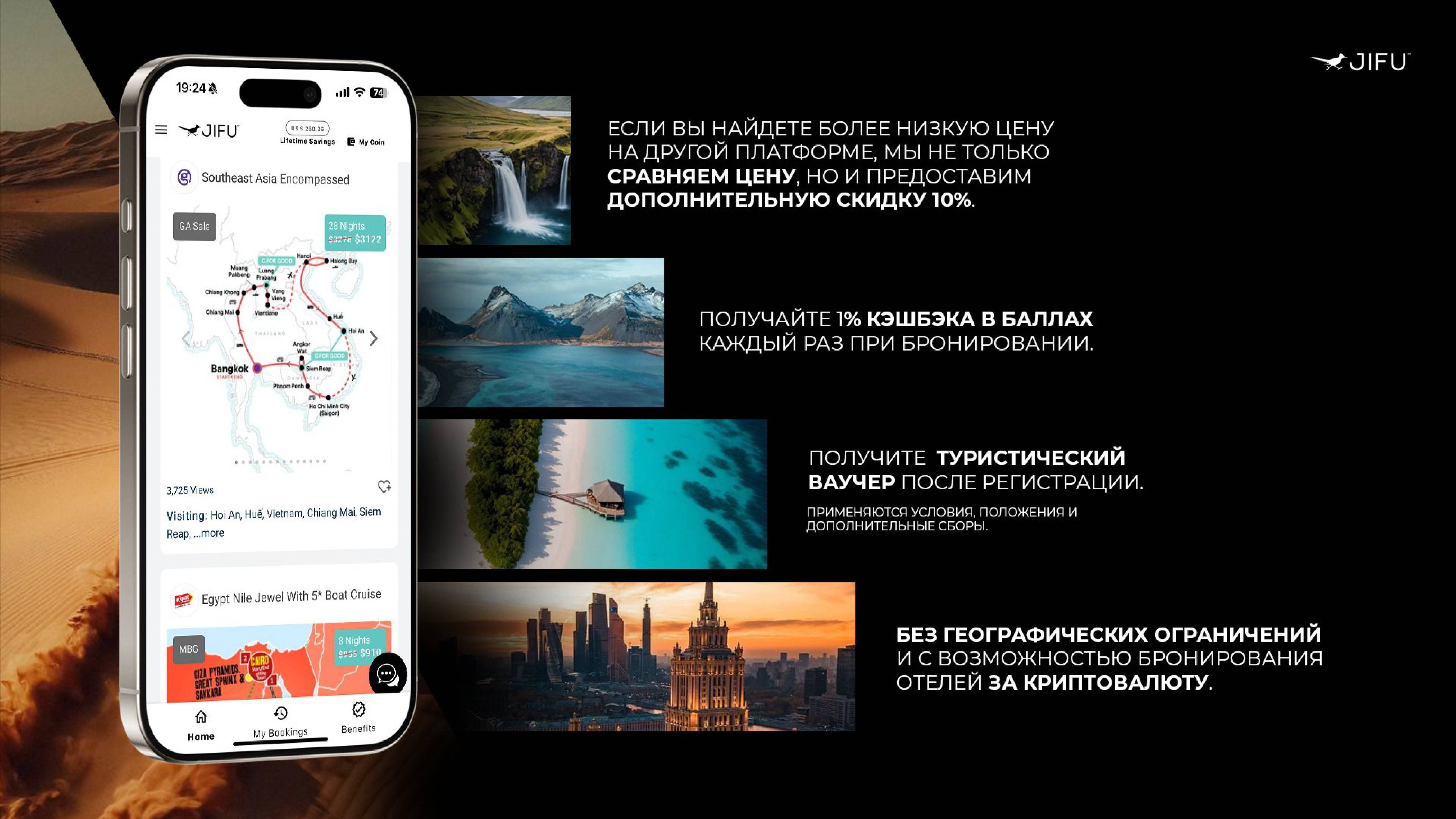Преимущества и выгоды JIFU TRAVEL для вас. Бронирование отелей, круизов, туров, аренды авто и др.