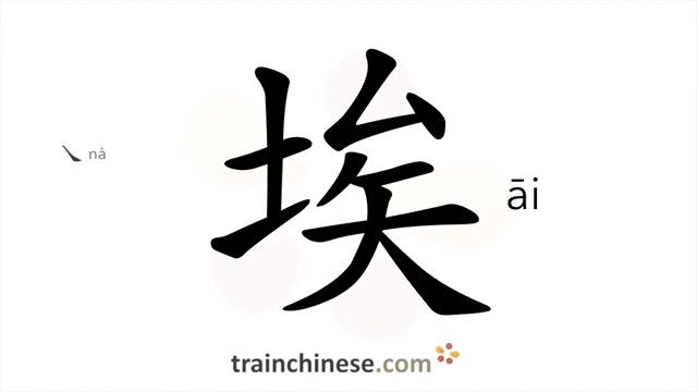 埃 (āi) dust; dirt; angstrom (unit of length equal to one hundred-millionth of a centimeter)