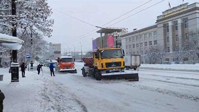 Колонна снегоуборочной техники движется по центру Хабаровска