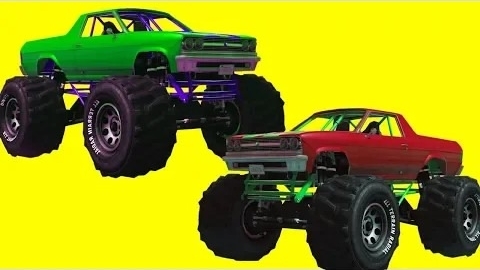 Мультфильмы про цветные автомобили с большими колесами супергероев и Человека-паука Узнай цвета