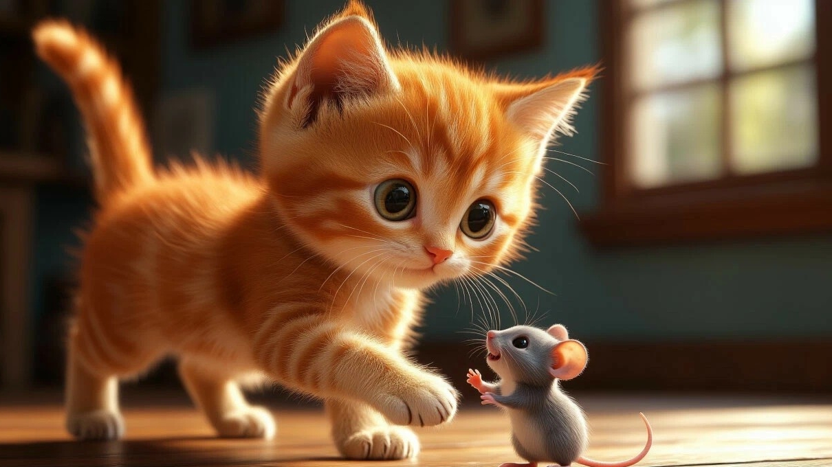 Класс видео о рыжем коте - 334 выпуск: "Дружба в мире игр: рыжий котенок и серый мышонок счастливы"